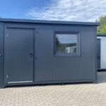 Contenedor de oficina de 6 x 2,40 m con WC, ducha y cocina americana.